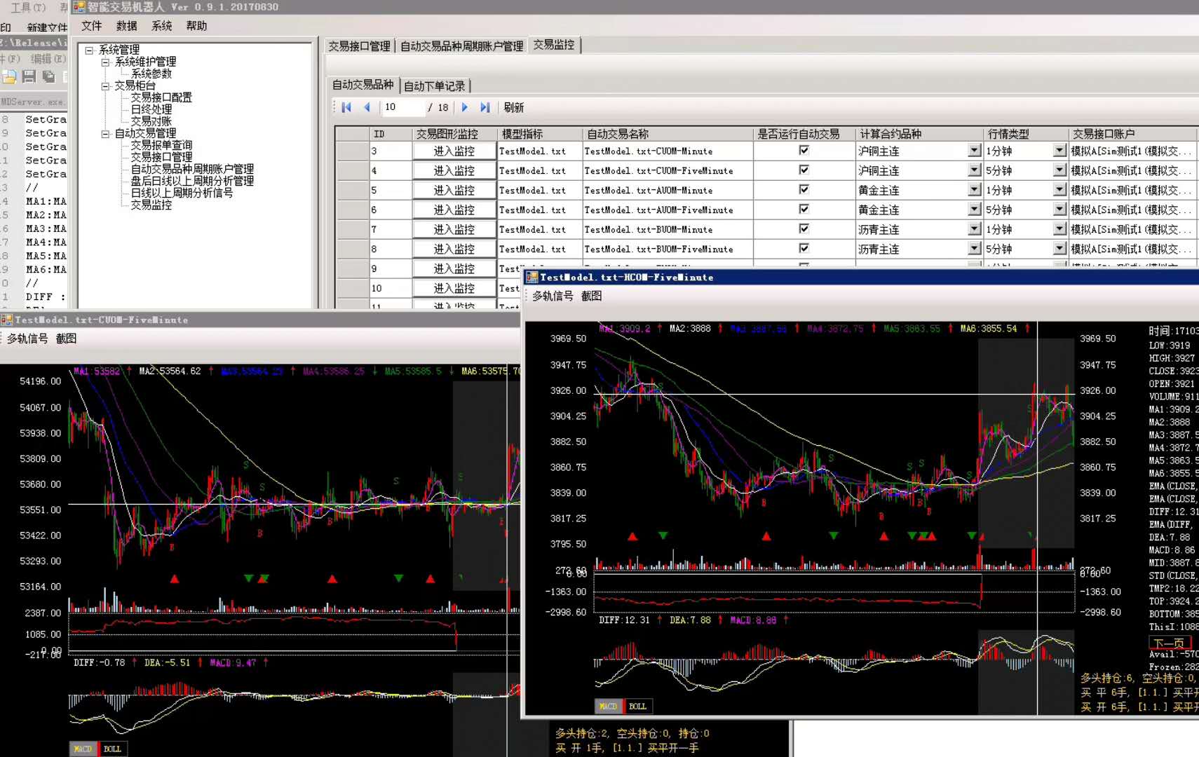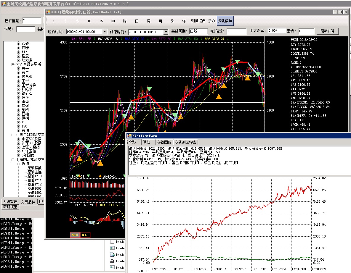 模型指標(biāo)計(jì)算,歷史動(dòng)態(tài)測(cè)試,交易報(bào)單管理,交易報(bào)單,行情數(shù)據(jù)讀取,連接行情服務(wù)器,實(shí)時(shí)交易,日志系統(tǒng),下載行情服務(wù)器數(shù)據(jù),許可證管理,主力合約切換, CTP接口管理,自動(dòng)交易接口管理,自動(dòng)交易品種周期賬戶管理,下載數(shù)據(jù),處理數(shù)據(jù),股票池管理,股票分析筆記,模型指標(biāo)管理,一鍵加載自動(dòng)交易,交易報(bào)單查詢,模型監(jiān)控,報(bào)單監(jiān)控, 參數(shù)配置 ,鼠標(biāo)滾動(dòng)切換品種。